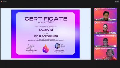 Solusi Ajifandi cs ini berhasil meraih Juara I pada Kompetisi Poster dan Paper ‘Advancing Indonesia’s Energy with Geophysics (AEIG)’ yang diselenggarakan oleh Universitas Indonesia.