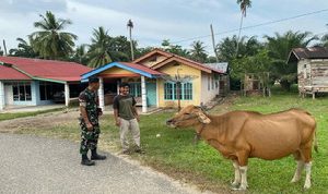 Pekanbaru,Detaksatu ; Babinsa Kelurahan Limbungan Serda Hazirman anggota Koramil 01/Rumbai Kodim 0301/PBR melaksanakan monitoring Soft Opening peletakan batu pembangunan Riverside Stable – UAS, dan penanaman Durian – UAS.