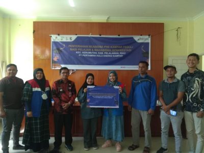 PT PHE Kampar melaksanakan sosialisasi kegiatan hulu migas dan penyerahan beasiswa PHE Kampar Peduli kepada 5 orang pelajar dan mahasiswa berprestasi di Kecamatan Kerumutan, Kabupaten Pelalawan, Riau.