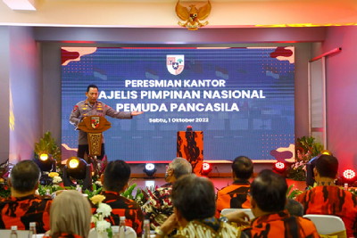 Jakarta, Detaksatu : Kapolri Jenderal Listyo Sigit Prabowo menghadiri undangan acara peresmian Kantor Majelis Pimpinan Nasional (MPN) Pemuda Pancasila (PP) di Jalan Teuku Cik Ditiro, Menteng, Jakarta Pusat, Sabtu (01/10/22).