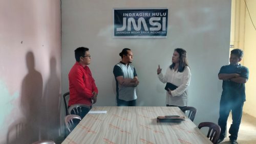 Dalam kesempatan itu juga, JMSI Inhu menyerahkan baju JMSI kepada staf ahli I Bidang pemerintahan Evy Irma usai meninjau sekretariat JMSI Inhu.