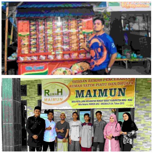 INHU, DETAKSATU.COM – Dalam Rangka menyambut datangnya Bulan Suci Ramadhan Biq boss Usaha Kecil Menengah (UKM) Mie Pedas, Warmindo Kekinian, Lokasi Lapak Depan Gedung Buana Sakti Airmolek Kecamatan Pasirpenyu Kab Inhu-Riau, Kabut Mandala EP SIP didampinggi koleganya Zahara Nugraha, berbagi Santunan kepada 25 orang Anak Yatim/Piatu di Panti Asuhan Maimum Yayasan Rumah Pencerahan Yatim Piatu dan Dhuafa, Minggu (19/3) di Desa Kota Lama Kec Rengat Barat Kabupaten Indragiri Hulu – Riau.