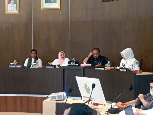 Kadis PUPR Pelalawan, Joko Sutardi, ST., MT dan PLT Kadis Kominfo, Davidson Saharuddin, SH., MH serta Kepala Badan Perencanaan Daerah T. Zulfan ikut serta mendampingi Bupati Pelalawan dalam rapat tersebut.