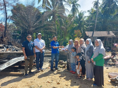 Inhu, Detaksatu : Karang Taruna Kecamatan Lirik menyalurkan bantuan berupa sembako dan uang tunai untuk korban kebakaran di Desa Lambang Sari IV, Sabtu (20/5/2023) pagi.