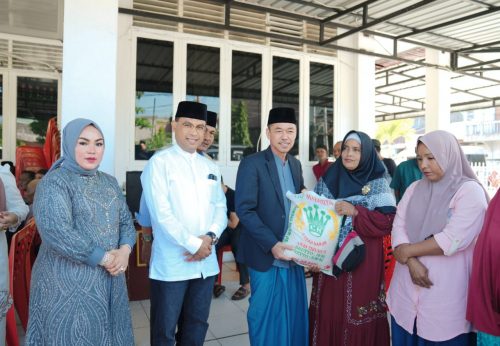 “Alhamdulillah hari ini pemerintah daerah bersama Baznas membagikan 200 paket sembako kepada masyarakat, ” kata Bupati.