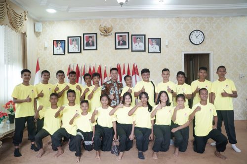 Rohil, Detaksatu.com : Bupati Rokan Hilir (Rohil) Afrizal Sintong melakukan pelepasan untuk memberangkatkan official dan atlet wushu Rohil yang akan bertanding di Pekanbaru mengikuti seleksi daerah Pekan Olahraga Wilayah (Porwil) Provinsi Riau, Kamis (20/7/2023) di mess Pemda Rohil.