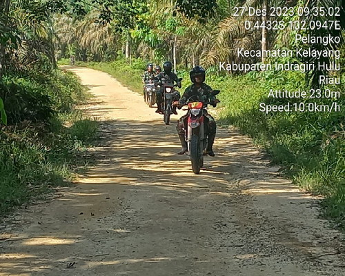 Inhu, Detaksatu – Koramil 04/Pasir Penyu Kodim 0302/Inhu melaksanakan patroli dan sosialisasi pencegahan Kebakaran Hutan dan Lahan (Karhutla) di desa Pelangko Kecamatan Kelayang Kabupaten Inhu, Rabu 27 Desember 2023.