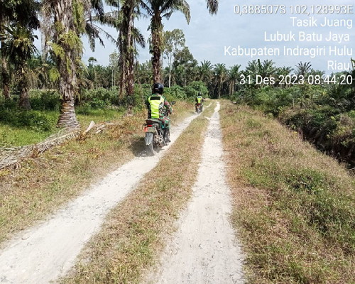 Inhu, Detaksatu – Terus tingkatkan pengawasan untuk menjaga terjadinya kebakaran hutan dan lahan (karhutla) di desa binaan, Kodim 0302/Inhu melalui Babinsa Koramil 04/Pasir Penyu melaksanakan kegiatan Sosialisasi dan patroli rutin, di Desa Tasik Juang Kecamatan Lubuk Batu Jaya Kabupaten Inhu, Minggu 31 Desember 2023