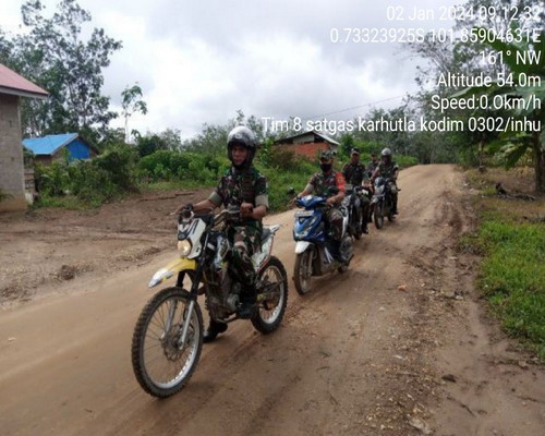 Inhu, Detaksatu – Kodim 0302/Inhu Melalui personil Koramil 05 Peranap dan Tim Gabungan Satgas Karhutla melaksanakan Patroli dan Sosialisasi Karhutla melaksanakan Patroli dan Sosialisasi Karhutla di Desa Sukamaju Kec. Batang Peranap Kab.INHU, Selasa (2/1/2024) di titik Koordinat : 0,71’5 195″$ 003’11:12:363 E’.