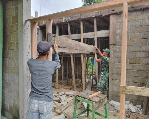 Untuk meningkatkan kerja sama dan soliditas yang tinggi, Babinsa Koramil 04/Pasir Penyu Kodim 0302/Inhu, Serda Suhermansyah membantu warga binaan yang sedang membangun rumah Rumah di Desa Petonggan Kecamatan Rakit Kulim Kab. Inhu, Sabtu 6 Januari 2024.