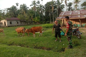 “Kepada warga supaya tidak perlu takut melaporkan ke petugas, jika didapati kesehatan hewan ternaknya dengan ciri-ciri keluar air liur berlebihan, lepuh, luka pada kuku (kuku terlepas), lepuh pada mulut, lapor kepada instansi terkait,” Ujar Babinsa Praka Rahmad Dika.**