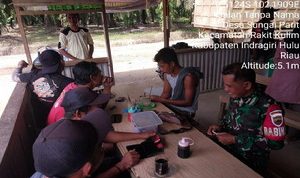 Inhu, Detaksatu – Tim Satgas Karlahut Kodim 0302/Inhu, Koramil 05 Peranap Patroli dan Sosialisasi Karhutla di Desa Baturijal Hulu Kec. Peranap Kab.INHU titik Koordinat : -0.513458S 101.928078E, Kamis (20/2).