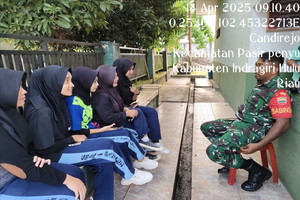 Inhu, Detaksatu – Babinsa Koramil 04/Pasir Penyu Kodim 0302/Inhu, Kopda Rachmansyah , melaksanakan kegiatan Komunikasi Sosial (Komsos) dengan para pelajar di Desa Candirejo Kecamatan Pasir Penyu Kabupaten Inhu. Senin (14/04/2025).