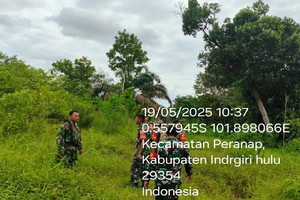 Inhu, Detaksatu – Tim Satgas Karlahut Kodim 0302/Inhu, Koramil 05 Peranap Patroli dan Sosialisasi Karhutla di Desa Selunak Kecamatan Batang Peranap Kab.INHU titik koordinat: 0.557945S 101.898066E, Senin (19/5/2025)
