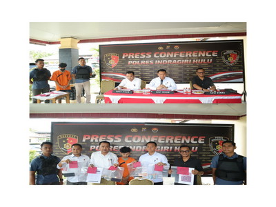Dalam kesempatan tersebut, hadir memberikan keterangan Kasat Reskrim Polres Inhu AKP Arthur JT, S.Trk, S.I.K., Kasi Humas Aiptu Misran SH, dan Ps. Kanit Pidum Aiptu S.Nazara, S.H.