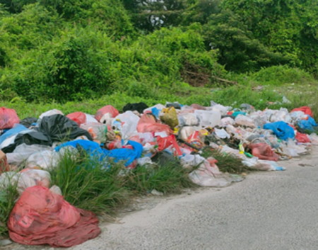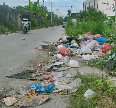 Sampah yang menumpuk di pinggir jalan merupakan hasil dari kebiasaan buruk dari orang-orang yang tidak bertanggung jawab yang membuang sampah sembarangan. Sampah tersebut bisa berupa berbagai macam material seperti plastik, kertas, kardus, sisa makanan, dan barang-barang lainnya.