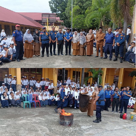 Dalam kesempatan itu, Dilakukan simulasi penanganan saat terjadi kebakaran, kemudian guru dan peserta didik diberikan kesempatan melakukan praktek menangani musibah kebakaran, dengan didampingi tim rescue Damkar Pekanbaru.