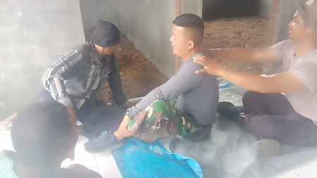 Di sela istirahat setelah bekerja sejak pagi, momen sederhana namun sarat makna terjadi. Serka Toni Efendi yang merasakan encok di pinggang kiri dibantu dipijat oleh Aipda Roganda Nababan. Tak berselang lama, Serka Toni pun bergantian memijat tangan Aipda Roganda yang juga pegal setelah seharian bekerja. Momen kecil itu menjadi gambaran nyata soliditas TNI–Polri; ketika satu merasakan lelah atau sakit, yang lain ikut peduli.