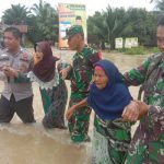 Inhu, Detaksatu – Danramil 04/Pasir Penyu Kapten Inf Bambang Kosasih Tarigan bersama Anggota salurkan bantuan kepada warga terdampak banjir di desa Dusun