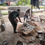 Babinsa Koramil 04/Pasir Penyu Membantu Pembangunan Rumah Warga