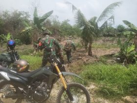 Pekanbaru, Detaksatu : Babinsa Koramil 01/Rumbai terus melakukan patroli di musim kemarau, seperti yang dipimpin Serma Ucok A Hsb beserta tiga anggota Babinsa melakukan patroli dan sosialisasi cegah Kebakaran hutan dan lahan (Karhutla) di wilayah jajaran Kodim 0301/PBR.
