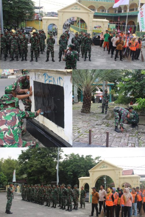 Pekanbaru, Detaksatu : Sempena memperingati Hari kemerdekaan ke 78 Republik Indonesia, personil Kodim 0301 PBR melaksanakan karya bakti bersama Pemerintah Kota Pekanbaru.