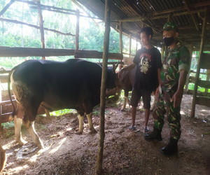 Saat mengunjungi salah satu peternak sapi milik warga,Babinsa mengungkapkan kegiatan ini kita lakukan sebagai upaya antisipasi serta memantau kesehatan hewan ternak terkait wabah PMK yang saat ini sangat meresahkan masyarakat terutama yang memiliki hewan ternak Sapi atau kambing.