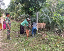 Bahkan, Babinsa di wilayah menyambangi warga yang memiliki ternak sapi dengan tujuan mengecek langsung kondisi kesehatan dan kondisi kandang.