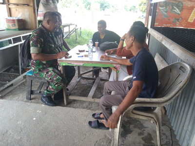 Dalam kegiatan komsos, Babinsa Sertu Kamal bersama warga membahas masalah pembuangan sampah.