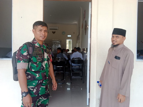 Guna menunjang tugas teritorial, Babinsa Serda Jujur Sijabat Koramil 01 Rumbai terus melakukan komunikasi dengan masyarakat terutama Pimpinan Pondok Pesantren Darussalam Bapak ustad Hidayat, di jakan Perjuangan Kelurahan Palas Kecamatan Rumbai Kota Pekanbaru, Rabu (05/06/2024).