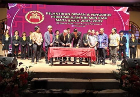 Pekanbaru, Detaksatu.com : Dewan dan pengurus Kin Men Riau masa bakti 2025–2029 resmi dilantik Minggu (9/3/2025) malam. Pelantikan berlangsung di Grand Lancang Kuning Ballroom Furaya Hotel, Pekanbaru.