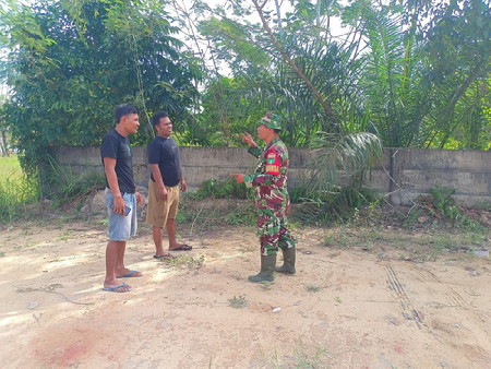 Pekanbaru, Detaksatu.com : Babinsa Koramil 01 Rumbai, Sertu Hazirman, melaksanakan kegiatan sosialisasi pencegahan Kebakaran hutan dan lahan (Karhutla) di wilayah binaannya, Minggu (23/11/2025)