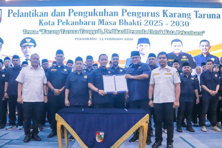 Hal ini disampaikan Wako Agung dalam pelantikan dan pengukuhan Pengurus Karang Taruna Kota Pekanbaru, masa bakti 2025-2030 di aula lantai 6 Komplek Perkantoran Pemerintah, Tenayan Raya, Rabu (11/2/2026).