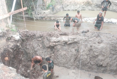 Pekanbaru, detaksatu : Pembangunan tiga unit Jembatan Garuda di wilayah Kodim 0301/Pekanbaru terus dikebut. Sejak pagi hari, personel TNI bersama masyarakat setempat bahu-membahu melanjutkan pengerjaan jembatan yang menjadi harapan baru bagi warga. Senin, 27 April 2026.