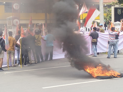 Pekanbaru, Detaksatu.com : Ratusan massa Forum LSM Riau Bersatu memenuhi depan pagar Dinas Pendidikan (Disdik) Provinsi Riau jalan Cut Nyak Dien, Pekanbaru,