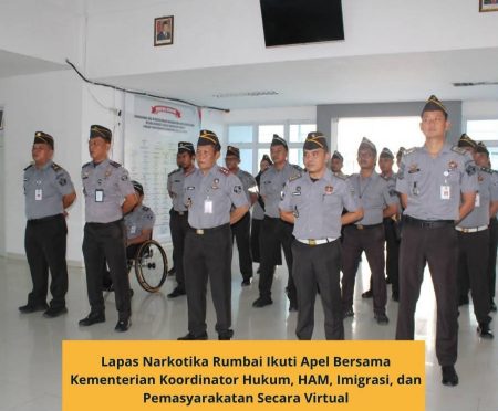 Pekanbaru, Detaksatu.com : Lembaga Pemasyarakatan (Lapas) Narkotika Kelas IIB Rumbai mengikuti kegiatan apel bersama yang diselenggarakan oleh Kementerian Koordinator Bidang Hukum, HAM,